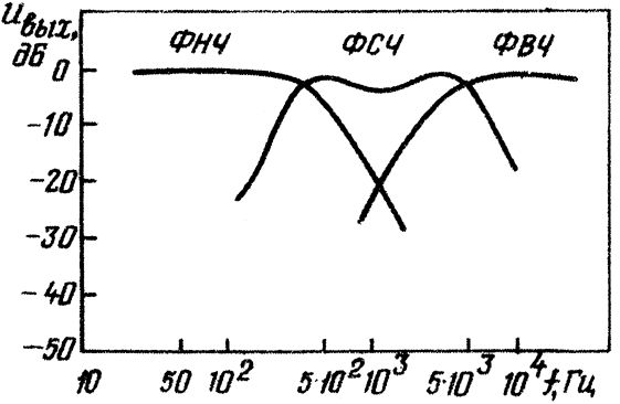 обычными активными ФНЧ и ФВЧ, а средняя