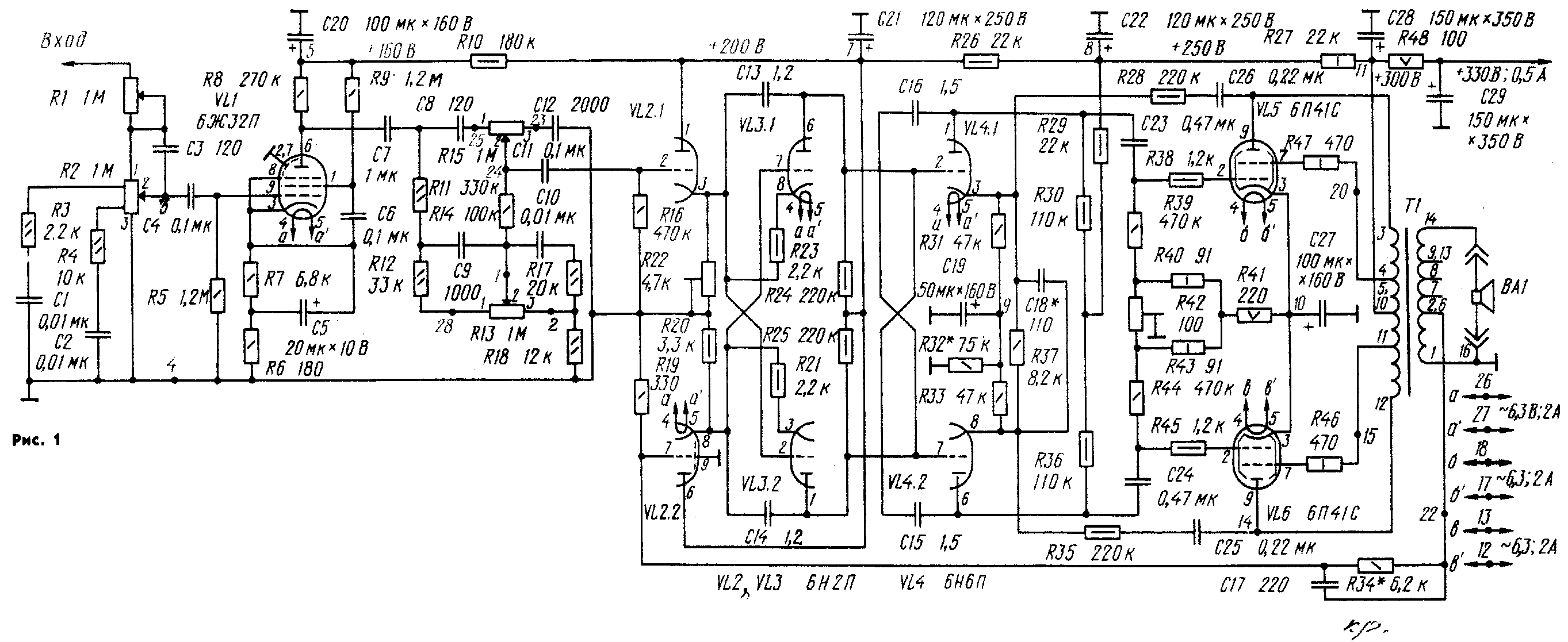 каскада УМЗЧ, собранного на малошумящем пентоде