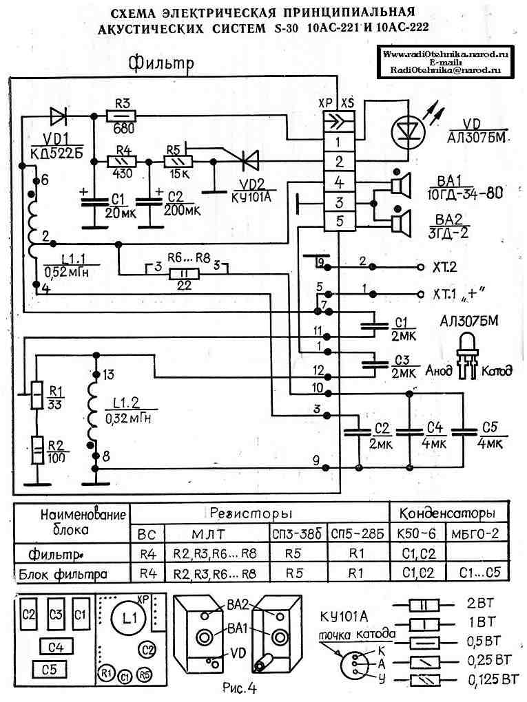 Электрические и электроакустичкские параметры акустических смстем (АС) "S-30B" соответствуют требованиям технических условий 3.843.055ТУ и второй группе сложности по ГОСТ 23262-83. АС предназначены для высококачественного воспроизведения звука в составе бытовой радиоэлектронной радиоаппаратуры. В АС имеется индикация перегрузки головок громкоговорителей, которая срабатывает при подаче на АС сигнала с уровнем, превышающим ее паспортную мощность. Для работы АС необходимо подключить к усилителю, имеющему на выходе каждого канала наибольшую (максимальную) мощность в пределах от 20 до 50 Вт. Если при работе АС начинает светиться индикатор ПЕРЕГРУЗКА, то следует уменьшить уровень подаваемого на нее входного сигнала (регулятором громкости в усилителе, к которому подключена АС).
