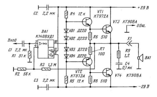 ОУ КР1408УД1 (DA1), предоконечный каскад - на