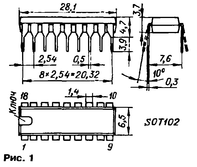 Микросхема оформлена в 18-выводном