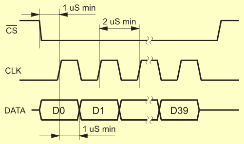 Чтобы записать во внутренние регистры-защелки новые данные, нет необходимости сбрасывать обе схемы: достаточно записать данные по очереди во внутренние регистры-защелки каждой схемы. При этом в последний бит D39 должен записываться ноль как для старшей, так и для младшей схем.