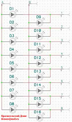 В устройстве желательно использовать светодиоды с повышенной яркостью свечения, что позволяет видеть работу устройства, да же при прямом солнечном свете.