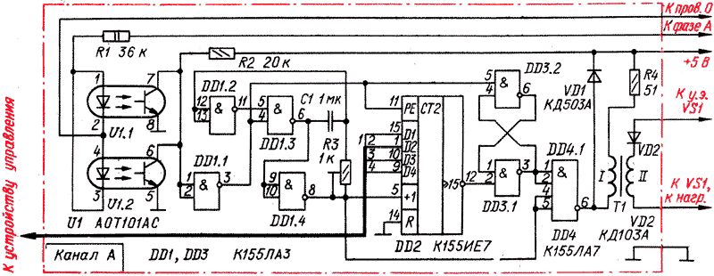 светодиод оптрона U1.1 и транзистор этого оптрона