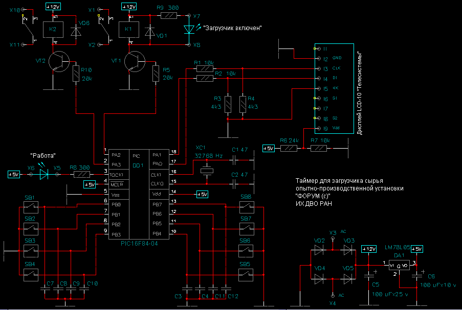 В свое время автору поступил заказ на устройство регулирующее время подачи сырья в опытно-производственную установку. Требовался автомат, позволяющий независимо друг от друга регулировать время подачи и время паузы с дискретностью в 1 секунду. Никакой обратной связи не требовалось. Рассмотрев различные варианты, от аналоговых мультивибраторов до устройств на дискретной логике, остановились на микроконтроллере PIC16F84. Преимущества такого варианта достаточно очевидны: