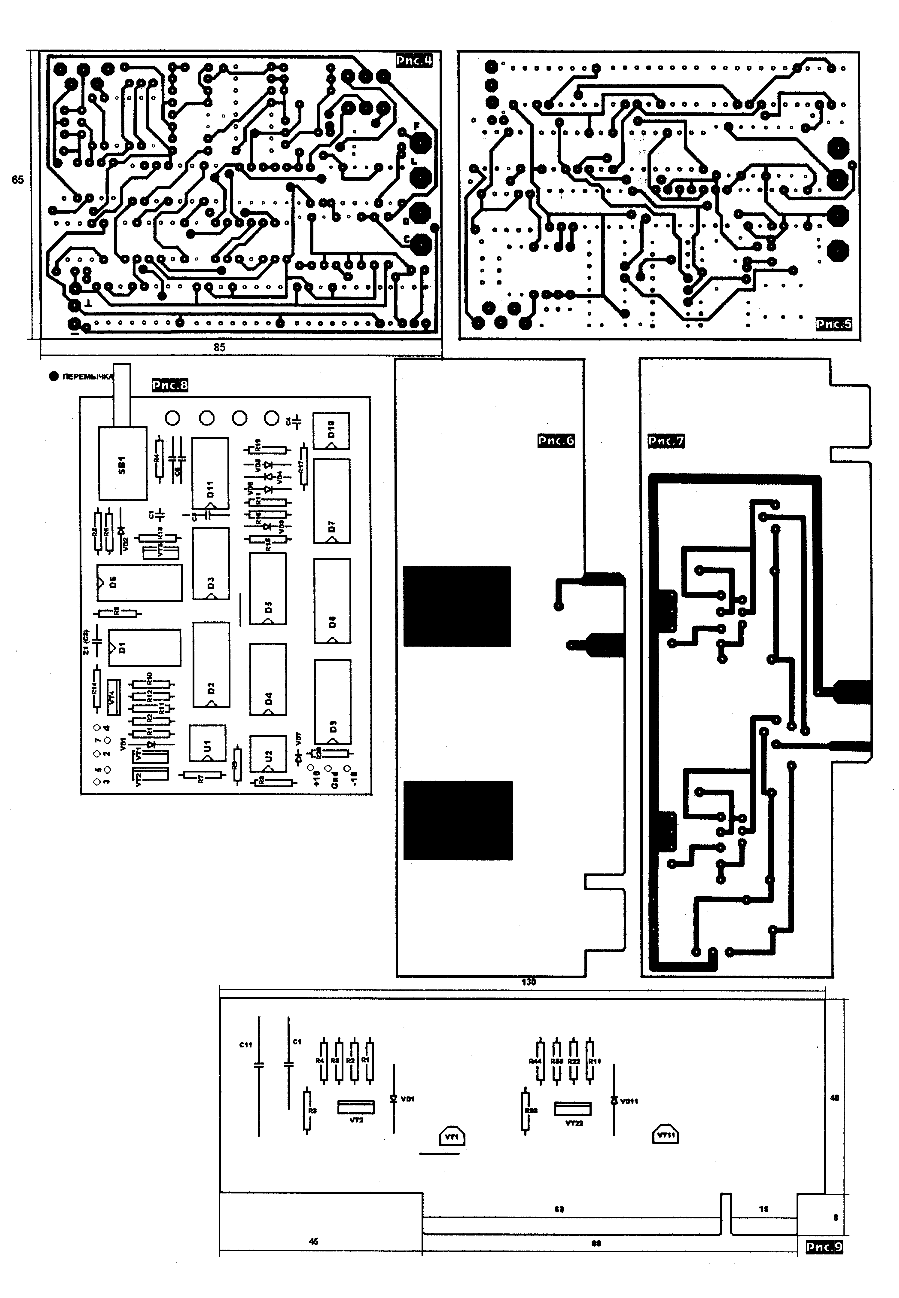 Детали измерителя и стабилизатора смонтированы на печатных платах (рис.4-7, М1:1) из двухстороннего фольгированного стек-лотекстолита, плата стабилизатора вставляется в свободный PCI (ISA) слот компьютера. Монтажные схемы приведены на рис.8, оис.9.