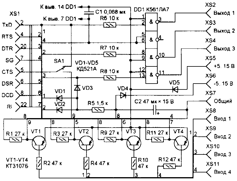 пределах -3...-15 В (логическая 1) и +3...+15 В (логический