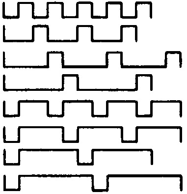 Набор сигналов интерфейса RS-232C и их назначение подробно описаны в [1]. Все они перечислены в табл. 1 вместе с не упомянутым в той же статье Rl (Ring Indicator - индикатор звонка, цепь 125). Как видно, в распоряжении пользователя имеются три выходных и пять входных цепей. Программа, формирующая на выходах СОМ-порта сигналы нужной формы и одновременно анализирующая состояние его входов, способна превратить ПК в запоминающий многоканальный логический анализатор с широким диапазоном периодов анализа и богатыми возможностями синхронизации, обработки и отображения результатов. Она может быть полезной при отладке самых различных цифровых устройств. Основная трудность разработки программы-анализатора заключается в том, что стандартная аппаратно-программная конфигурация IBM-совместимого ПК даже при наличии быстродействующих процессора и ОЗУ не позволяет сколько-нибудь точно формировать интервалы, меньшие нескольких сотен миллисекунд, используя в DOS прерывания процессора по переполнению системного таймера, а в Windows - таймерные сообщения. Так как эти события происходят с периодом приблизительно 55 мс, именно таким получается "квант" отсчета времени. Попытки перепрограммировать таймер приводят к непрогнозируемым последствиям для всех работающих программ и самой операционной системы. Можно отмерять время, подсчитывая число исполненных программой циклов и позаботившись, чтобы этот процесс не прерывали внешние события. Но и такая задача в современных операционных системах не решается корректно, к тому же требуется подстройка выдержки применительно к каждой аппаратной конфигурации ПК. В MS DOS подобные проблемы решаются легче, но разработка программы становится слишком трудоемкой, если требуются графический интерфейс и вспомогательные действия: вычисления, печать графиков. Тем не менее при использовании любой операционной системы можно получить сигнал строго заданной частоты и формы на выходе TXD последовательного порта. Как известно, частота следования битов передаваемых данных равна частному от деления стабилизированной кварцевым резонатором образцовой частоты (115 200 Гц) на коэффициент М. Системное программное обеспечение выбирает и устанавливает этот коэффициент, исходя из стандартных скоростей передачи информации. Однако ничто не мешает прикладной программе присвоить коэффициенту М любое значение от 1 до 216-1 (0FFFFH). Таким образом, на выходе TXD могут быть получены импульсы частотой от 57,6 кГц до долей герца, причем произвольную частоту ниже 12 кГц удается установить с погрешностью не более+10, а ниже 1,2кГц-+1 %. Последовательным портом управляют через десять восьмиразрядных регистров его контроллера, называемого универсальным асинхронным приемопередатчиком (УАПП, UART). В табл. 2 приведены адреса этих регистров в пространстве ввода-вывода ПК и их функциональное назначение.