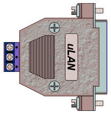 Разъем паяется прямо на плату, которая входит между рядами контактов. Другая сторона платы выполнена удлиненной и выходит за пределы корпуса разъема. В эту часть платы впаян 3-х контактный винтовой терминал.