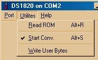 Рис. 13. Меню Utilites программы ds1820.exe в развернутом виде.