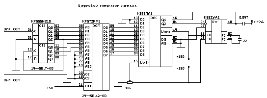 Сложность создания передатчика заключалась в том, что был необходим генератор синуса с произвольной частотой (от 300Гц до 3000Гц) и возможностью запускаться с "нуля" по команде управления. В процессе наладки была опробована схема на сдвиговом регистре и 4 резисторах (так называемая эмуляция ЦАПа). Но из-за взаимного влияния резисторов наблюдались значительные скачки амплитуды в разных точках "синуса" (больше похожего на прямоугольный треугольник). Поэтому была разработана другая схема на счётчике, ПЗУ (2К) и ЦАП, которая обеспечила "хороший" синус. Он(синус) формировался из 64 точек с градиентом амплитуды 256 значений. Большего деления амплитуды и не требовалось, а вот больше 64 точек не удалось сделать из-за нехватки скорости выдачи с COM порта (около 300 Мгц максимальная частота с генератора примерно 300 000 / 64 = 4700Гц). Управление передатчиком происходит по одному биту с COM порта. Дополнительно для синхронизации в COM порт вводится один бит информирующий о первой точке синуса.
