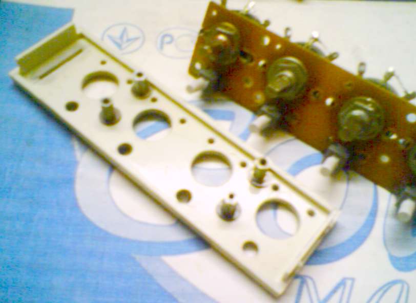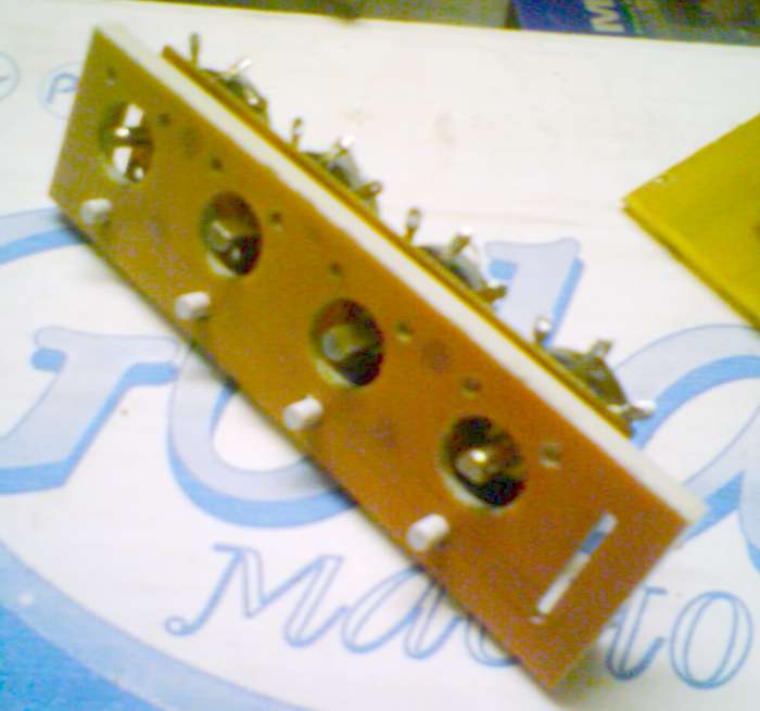 Если схему я придумал довольно быстро, то конструкцию я делал долго. Во-первых когда было свободное время, а во-вторых хотелось все-таки сделать "конфетку". Началось как обычно с собирания деталей и обдумывания как это все крепить и чем. Чудом нашел уже готовую посверленную планку под 4 резистора СП-1. Мне повезло можно сказать, а кто будет повторять сие творчество, придется сверлить самому. Переменные резисторы я взял от старых ламповых телевизоров. Переключатели пришлось купить на радиорынке вместе с кнопочками. Монтажные провода, припой, флюс и паяльник тоже необходимы.