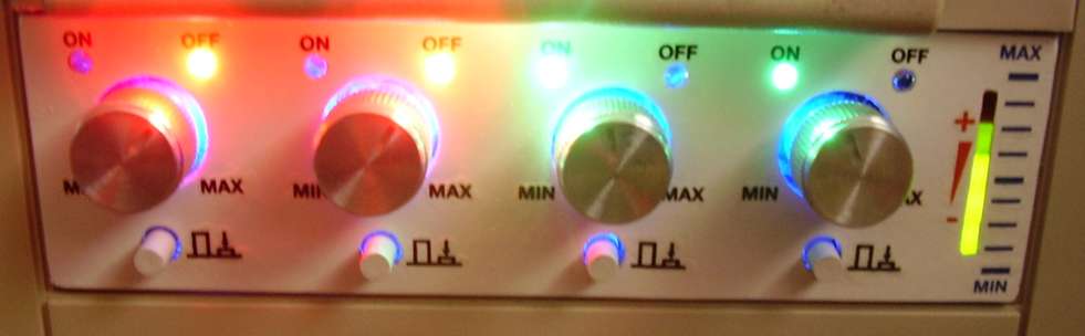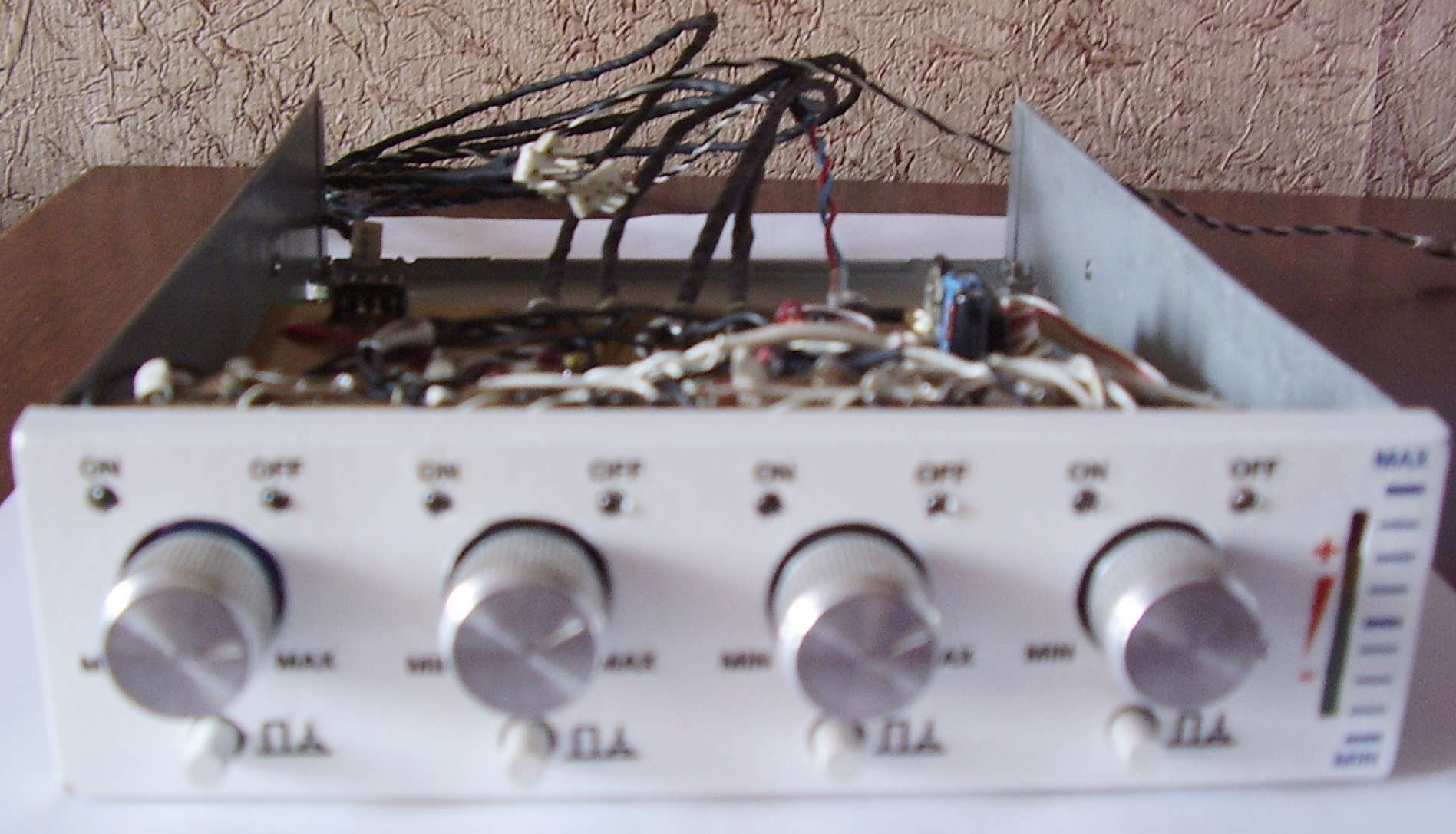 Это почти собранная конструкция. Не хватает только еще нескольких штрихов - распаять шлейф на светодиоды, распаять сигнальные светодиоды и надеть ручки на резисторы.