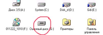Работа с контроллером достаточно простая. Если у Вас установлена операционная система Windows-2000, то при подключении она сама определит наличие внешнего устройства и в списке дисководов появится еще один с которым вы будете работать как с обычными дисками. Если Вы используете Windows-95/98, то необходимо установить драйвер устройства и в дальнейшем он сам будет определять контроллер при подключении к порту. На рисунке 2 показан фрагмен Windows Commander, где появился дополнительный диск "G", а на рисунке 3 - то же самое в папке "Мой компьютер".