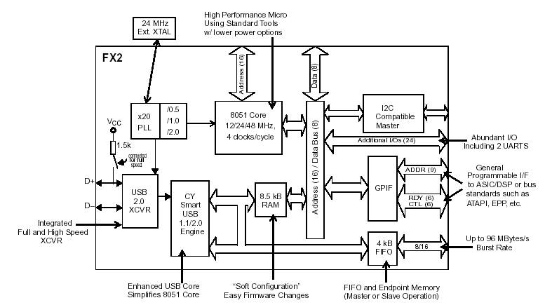 CY7C68013 - контроллер периферии для шины USB стандарта 2.0 с ядром MCS-51