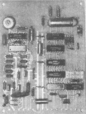 Налаживание устройства сводится к подбору резисторов R4, R15, R21 и сопротивления резистора R13. На вход устройства подают синусоидальный сигнал частотой 1 кГц и амплитудой 300 мВ и подбором резистора R4 добиваются максимальной чувствительности АЦП, контролируя сигнал на коллекторе транзистора VT3. Затем впаивают вместо подобранного резистора новый с несколько большим сопротивлением, чтобы при отсутствии входного сигнала транзистор VT3 был надежно закрыт. При этом гистерезис триггера в АЦП — около 100 мВ. Подстройкой резистора R13 при средней частоте узкополосного фильтра 1 кГц устанавливают длительность импульса, вырабатываемого первым ждущим мультивибратором, равной 1,25 мс. При других значениях входной частоты длительность импульса необходимо скорректировать согласно равенству тЖМ1 = Ти+ти/2, где Ти — период серии импульсов, ти — длительность импульсов в серии. Подбором резистора R15 добиваются, чтобы длительность импульса второго ждущего мультивибратора стала равной 100 мс. Резистор R21 подбирают таким образом, чтобы уровень входного сигнала был независим от положения переключателя SB2.