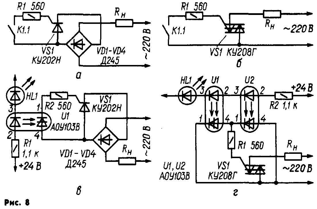 другом. Реле K1—KЗ (см. рис. 2) и K1 (рис. 7) — любые с