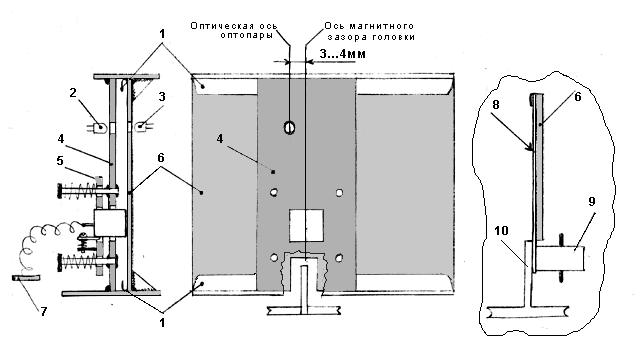 фотодиод; 4- неподвижная пластина узла головки; 5-