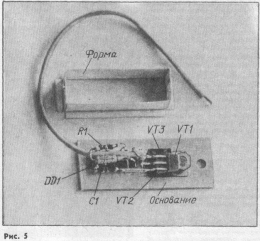 Вполне достаточная яркость свечения ламп выгодно сочетается с более мягким режимом накала из-за падения напряжения на коммутаторе. Зависимость времени зарядки конденсатора С1 от напряжения источника питания менее заметна, чем от сопротивления нагрузки. Так, при 1=1,6 Ом и изменении Uпит от 14 до 5 В время коммутации нагрузки увеличивается менее чем на 10 %. Примерно на столько же уменьшается частота коммутации.