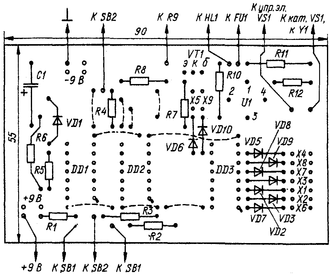 Выполняя свое обещание (см. «Радио», 1990, № 8, с. 34), помещаем чертеж печатной платы кодового замка авторов В. Козаченко, Л. Хмелевской.