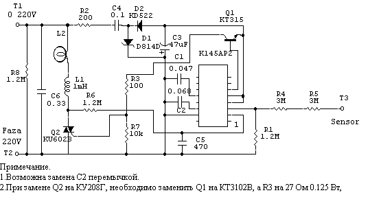 Сенсорный включатель лампы на микросхеме К145АП2.