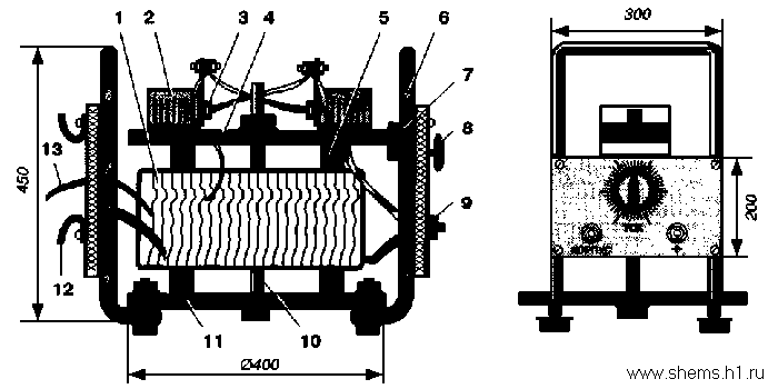 9 - клемма для подсоединения сварочного кабеля; 10-