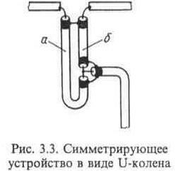 Входное сопротивление разрезного полуволнового вибратора составляет 73 Ом и хорошо согласуется с коаксиальным кабелем, имеющим волновое сопротивление 75 Ом. Однако для подключения коаксиального кабеля к антенне симметричной конструкции необходимо симметрирующее устройство. Чаще всего в качестве симметрирующего устройства, которое не изменяет входного сопротивления антенны, используют устройство, называемое U-коленом (рис. 3. 3). Названо оно так в связи с тем, что внешне напоминает латинскую букву U. U-колено образовано двумя отрезками 75-омного коаксиального кабеля. Длина короткого отрезка равна 1/4 длины волны в кабеле, а длина длинного -3/4 длины волны в кабеле. К точке их соединения подключается фидер, также выполненный из 75-омного кабеля. К антенне U-колено подключается в точках а и а'. Размеры отрезков U-колена для каждого канала приведены в табл. 3.1.