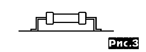 Для подсоединения к одной или двум антеннам нескольких телевизоров в квартире или на даче автором используется схема сумматора на основе направленных ответвителей (рис.1). Таких распределительных устройств сделано 10 шт. Все они работают без замечаний, без взаимного влияния телевизоров друг на друга при одновременном их включении. Монтажная схема показана на рис.2. Устройство собрано на текстолитовой плате, фольгированной со стороны монтажа. Размеры платы не критичны, в авторском варианте - 50x95 мм. «Пятачки» для пайки резисторов и кабелей вырезаются резаком. Оплетки кабелей и «земляные» концы резисторов припаиваются к фольге по месту расположения. Все резисторы мощностью рассеивания 0,125 Вт, формуются перед пайкой так, как показано на рис.3. Расстояние от корпуса резистора до платы должно быть 1-2 мм, и такое же - от торца резистора до изгиба вывода. Сборку устройства выполняют в следующем порядке. Восемь отрезков провода ПЭЛШО диаметром 0,3-0,4 мм длиной 95-100 мм с предварительно залуженными концами складывают в жгутик, выравнивают концы и слегка скручивают.