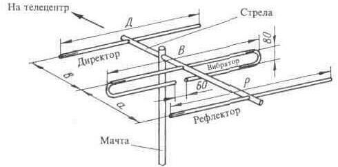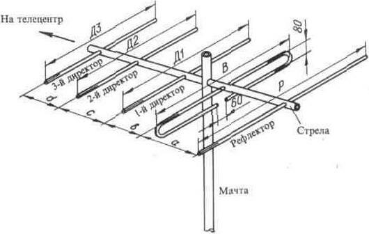 Антенна "Волновой канал" представляет собой набор элементов: активного - вибратора и пассивных - рефлектора и нескольких директоров, установленных на одной общей стреле.