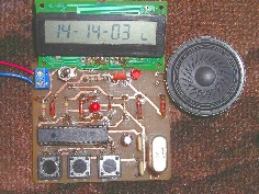 Для управления часами используются 3 кнопки - кнопка выбора режима "mode"; кнопка выбора объекта коррекции "choice"; кнопка изменения объекта коррекции "set".При включении часы находятся в режиме отображения текущего времени (Часы - минуты - секунды). При нажатии на кнопку "mode", часы циклически переходят в режим установки времени, в режим установки будильника и в режим корректировки хода. В режиме установки времени сначала мигают секунды, и если нажать на кнопку "set", то произойдет их обнуление. Если же 1 раз нажать на кнопку "choice", то станут мигать минуты. В этом режиме, при нажатии на кнопку "set" происходит циклическое инкрементирование минут. Если в режиме установки времени 2 раза нажать на кнопку "choice", то появится возможность корректировки часов. При дальнейшем нажатии на кнопку "choice", снова начнут мигать секунды и т.д. В режиме установки будильника, время срабатывания будильника устанавливается точно также, как и в режиме установки времени. Если не мигают ни часы, ни секунды, то нажатием кнопки "set" можно включить или выключить будильник. Если на индикаторе отражается символ "Р", значит будильник включен. В режиме корректировки хода задается количество секунд, на которое часы "убежали" или "отстали" за 1 час. То есть, если за 1 час часы отстали на 2 секунды, то значение калибровочного коэффициента равно 2, а если часы убежали на 3 секунды, то калибровочный коэффициент равен -3. При нажатии на кнопку "set" происходит инкрементирование калибровочного коэффициента, а его максимальное значение равно 30. После 30 калибровочный коэффициент снова сбрасывается в 0, а затем происходит его уменьшение до -30, после чего он снова становится равным нулю.