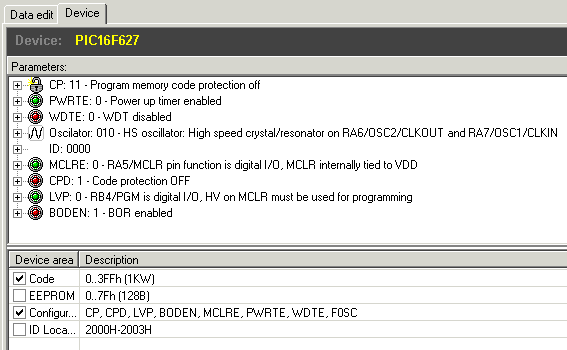 Модуль легко перепрограммируеться через разъем X2 с помощью простого программатора не забыв при этом отсоединить кварц и ногу 3 микросхемы DD2. Настройка опций при этом будет следующая:
