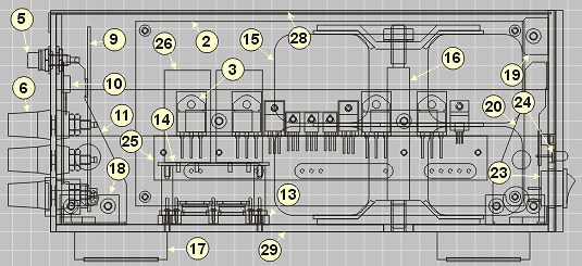 | 14 - плата конденсаторов фильтра | 29 - шасси |