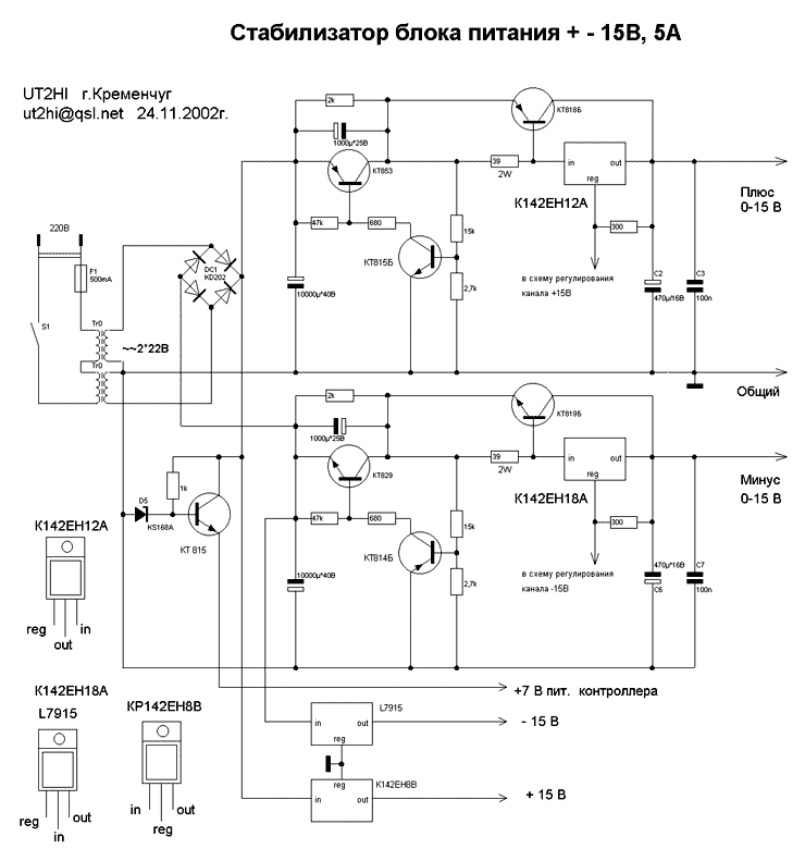 Предлагаю вашему вниманию биполярный блок питания для повседневных нужд радиолюбителей, который имеет регулировку выходного напряжения в пределах ±15 вольт, с дискретностью 0,1 вольта при токе нагрузки до 5 А. Особенностью контроллера управления является то, что он является «задатчиком» напряжения. Индикатор отображает задаваемое напряжение с дискретностью 0,1 вольта. При этом нет необходимости измерять напряжение на выходе блока питания. Предусмотрена быстрая установка максимального (одновременное нажатие клавиш S1+S3), минимального (одновременное нажатие клавиш S2+S4) энергонезависимая память каждого канала (одновременное нажатие клавиш S1+S2 или S3+S4 соответственно) напряжения, защита от короткого замыкания.