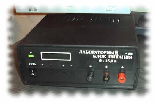 Стабилизатор напряжения Рис. 2 построен по схеме с применением микросхем К142ЕН12А и К142ЕН18А. По назначению эти микросхемы являются регулируемыми стабилизаторами напряжения в пределах 1,2-37,0В и 1,3-26,5В соответственно. Поэтому данный контроллер задает «образцовое» напряжение от 0 до 14,7В. Соответственно выходное напряжение равно Uконтр.+1,3В. Так как эти микросхемы допускают максимальный ток в нагрузке 1,0 А при напряжении 10В. на «помощь» в каждом канале параллельно включены мощные транзисторы. Микросхемы стабилизатора и транзисторы стабилизатора устанавливаются на радиатор, с необходимой площадью рассеивания исходя из предполагаемых нагрузок, но через изолирующие слюдяные прокладки. ЖКИ индикатор – 10 разрядный, с контроллером фирмы Holtek HT1613, либо от телефона типа “PANAFONE”, я использовал индикатор «made in Taiwan» - КО4В2. Пьезокерамический излучатель любой, служит для озвучивания клавиш и выполняемых действий. Номинал кварцевого резонатора не критичен – любой от 3 до 4 МГц. Прошивка контроллера в файле bp_pic.zip. Внешний вид готового блока питания изображен на Рис. 3