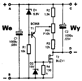 Его применение не только снижает уровень помех, проникающих в звуковые каналы, но и защищает радиоаппаратуру от бросков напряжения при включении/выключении стартера и т.п.. Выходное напряжение регулируют резистором PR1, а транзистор Т2 необходимо установить на радиатор площадью 15-20 см2.