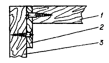 Я предлагаю соединять панели ящика другим способом, свободным от указанных недостатков. Для соединения деталей из облицованной древесины потребуется фанера толщиной 4...5 мм, клей и шурупы (или гвозди). Для сборки наиболее подходит клей ПВА, но вполне приемлем и любой столярный клей или эпоксидная смола. Шурупы нужны на 1,5...2 мм короче суммарной толщины материала стенки и фанеры. Наряду с заготовками панелей ящика, надо изготовить сборочные пластины из фанеры. Длину ПЛАСТИН выбирают равной длине стыка панелей (подгоняют по месту). Ширина пластин должна быть не менее двойной толщины панелей. В передней панели, если она не съемная, необходимо прорезать все отверстия (под динамические головки, фазоинвертор и др.). Устройство соединения и порядок сборки узла поясняет рисунок. Сначала пластину 2 с помощью шурупов и клея крепят к торцу панели 1. После частичного высыхания клея (для ПВА достаточно 30 мин) обильно смазывают клеем наружную сторону пластины 2, накладывают на нее вторую панель 3 и скрепляют шурупами. Таким же образом крепят остальные панели. Излишки клея убирают сразу же влажной тряпкой. Торцы панелей после тщательного выравнивания оклеивают шпоном или маскируют декоративными металлическими или пластмассовыми накладками.