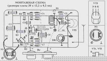 2. Конденсатор С1 паять на микрофон М1 .