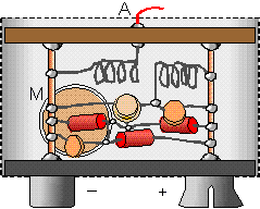 На рисунке показан один из возможных вариантов монтажа радиомикрофона. Этот радиомикрофон рассчитан на питание от батареи типа КРОНА и смонтирован на колодке от старой батареи.