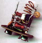 Микрофон - телефонный электретный капсюль (применяется также в магнитофонах). На задней плате есть два контакта, один из них соединен с корпусом микрофона. Это минусовой вывод - общий. На второй контакт подается питание через резистор 5...20 кОм. Если усиление слишком велико, в цепь эммитера первого транзистора включите сопротивление 100 Ом...10 кОм. Резистор в цепи эммитера второго транзистора определяет рабочий ток генератора ВЧ. Не уменьшайте его значение ниже 50 Ом - транзистор будет перегружен. Увеличение сопротивления повышает стабильность генератора и срок службы батареи, но приводит к снижению выходной мощности. Диаметр намотки контурной катушки - 5 мм, провод 0.5 мм. Число витков катушки для диапазона FM 5-6. Грубо рабочую частоту устанавливают подстроечным конденсаторм контура, а точно - растяжением/сжатием витков катушки. Подстроечный конденсатор желательно заменить постоянным нужной емкости. Катушка связи расположена рядом с "горячей" стороной контурной катушки соосно на рассоянии 2 мм и содержит 4 витка того-же провода. Сближение катушек (вплоть до намотки катушки связи поверх контурной) и увеличение кол-ва витков катушки связи увеличивает полезную мощность в антене, но снижает стабильность частоты из-за влияния емкости антены на настройку контура (т.к. каскад усиления мощности отсутствует). Поэтому ограничьтесь максимально возможной глубиной связи, при которой влияние расположения антены в пространстве и касание ее руками не приводит к заметному уходу частоты передатчика.