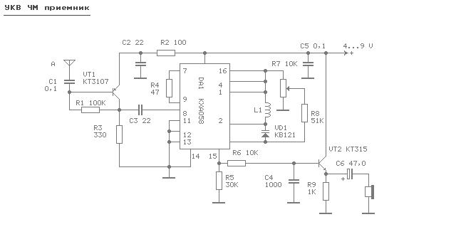 УКВ ЧМ пpиемник пpост в настpойке и изготовлении. Основy составляет м/с КХА058, котоpая содеpжит в своем составе гетеpодин, смеситель, УПЧ, детектоp.