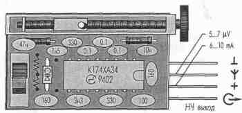 L1 - 5, L2 - 7 витков, диаметр намотки 3,5 мм, провод - 0,3...0,5 мм